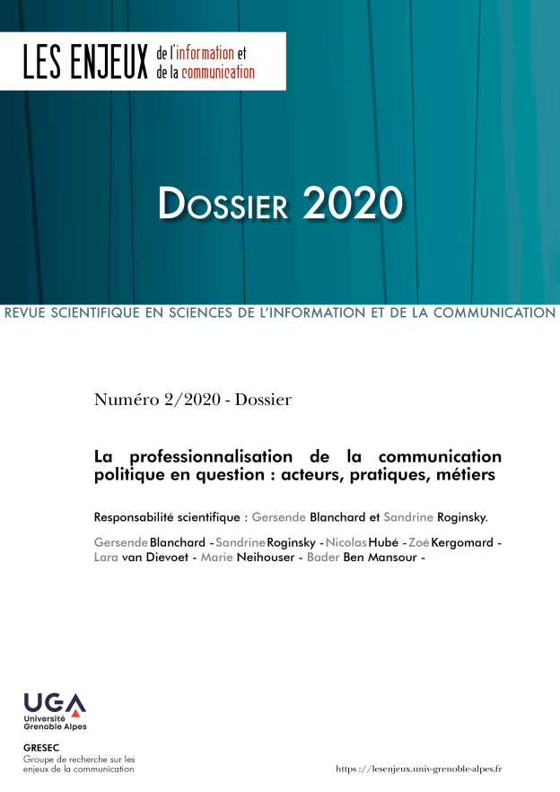 Sandrine Roginsky, (UCLouvain, LASCO, RESIPROC), et sa collègue Gersende Blanchard (Université de Lille, GERiiCO), viennent de publier un dossier fort pertinent dans la revue Enjeux de l’information et de la communication. Intitulé La professionnalisation de la communication politique en question : acteurs, pratiques, métiers, le dossier proposer « […] des éclairages sur une série d’éléments relatifs aux parcours, aux relations, aux pratiques et aux métiers des acteurs de la communication politique, des points aveugles restent à explorer, notamment sur les représentations des professions et professionnel.le.s de la communication politique ».